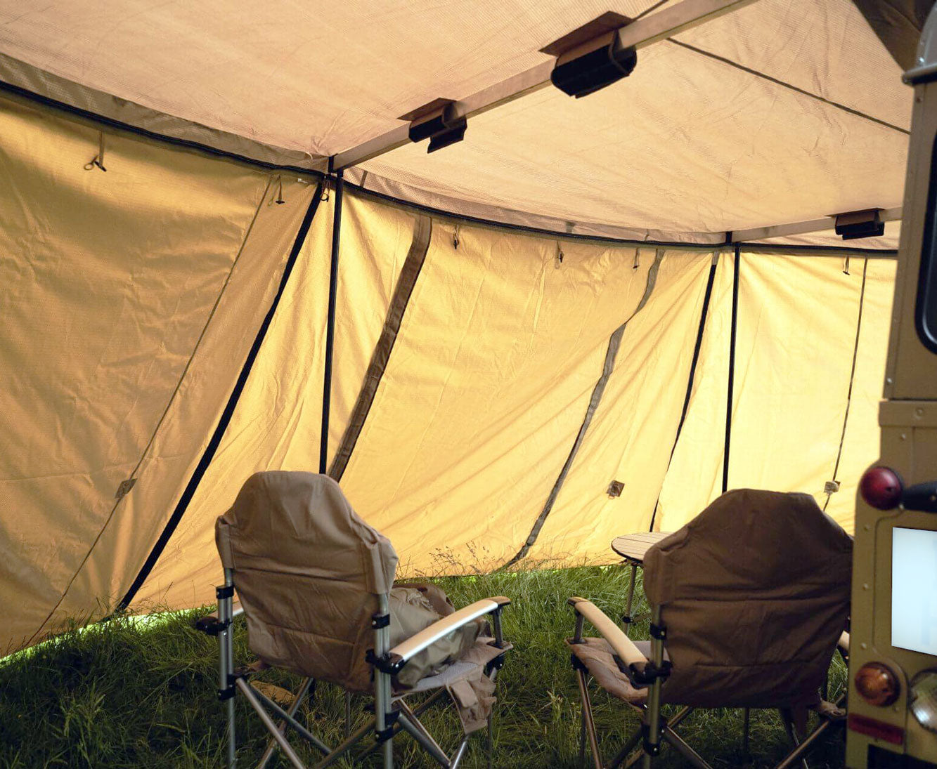 Unsere ausklappbare Markise "Expedition 270" ist auf Langlebigkeit und Komfort ausgelegt und bietet Ihnen das ganze Jahr über einen perfekten Arbeits- und Freizeitbereich direkt neben Ihrem Fahrzeug. Diese Markise faltet sich in 270° Grad um Ihr Fahrzeug auf und bietet Ihnen im herumdrehen in wenigen Minuten einen riesigen zusätzlichen geschützten Raum zum Arbeiten und Entspannen.