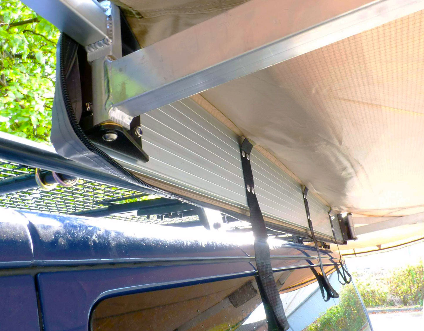 Unsere Markisen werden mit universal Adapter bzw. Halter zur Befestigung der Markise geliefert. Es ist jedoch entweder ein Dachgepäckträger, oder Dachquerträger notwendig um die Markise mit Hilfe der Adapter daran zu montieren.
