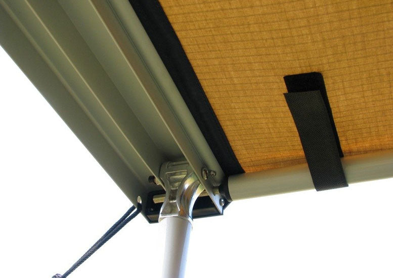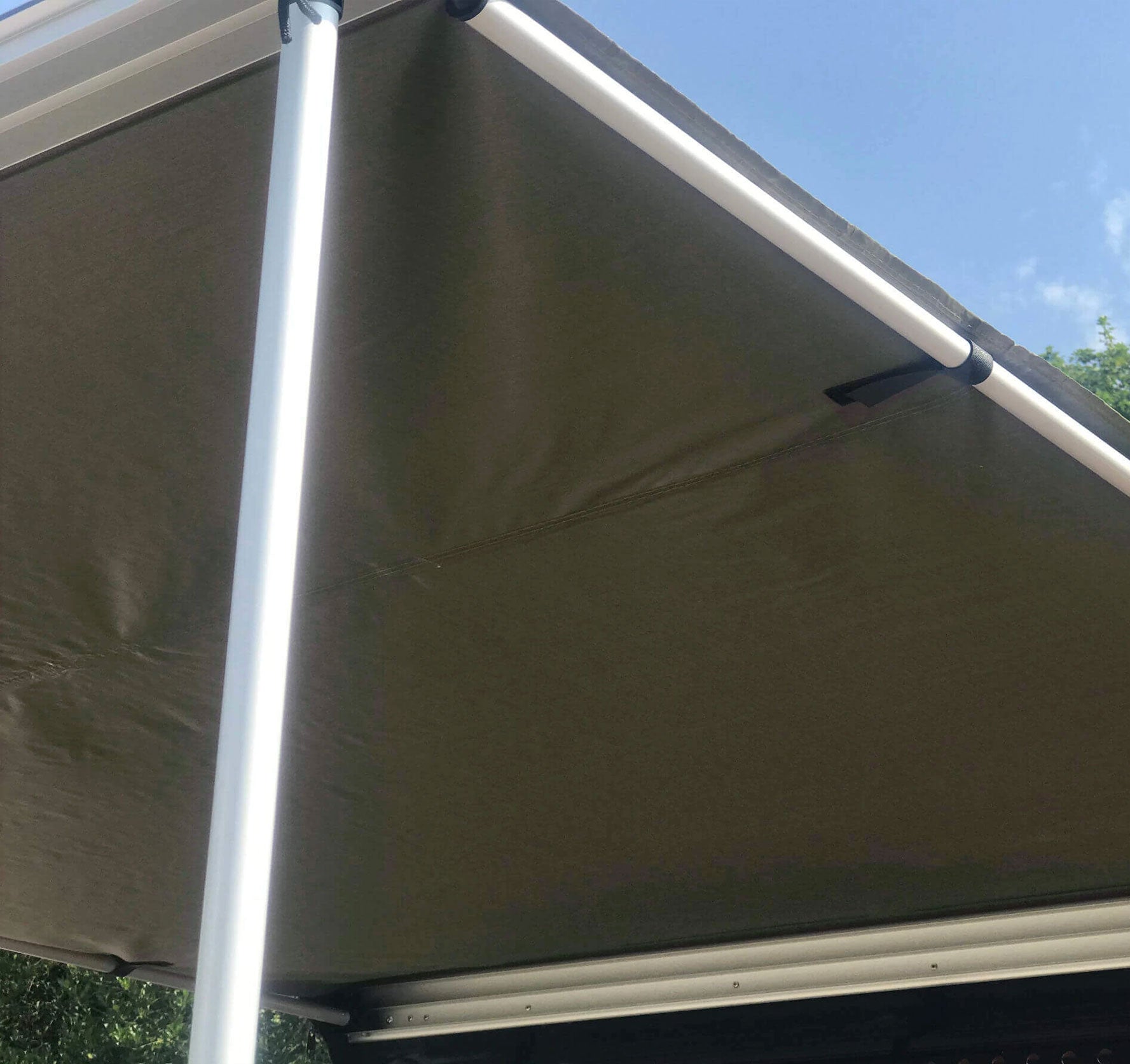 Diese leichte hochwertige Autodach Markise ist eine robuste, aber flexible Struktur aus robustem 420D Oxford Polyester und Polyurethan imprägniert. Die Markise ist wasserdicht, formbeständig und verrottungsfest und hat eine 100% UV-Ausblendrate. Die Stangen und Spreizer sind aus eloxiertem, robustem Aluminium gefertigt und rosten nicht.