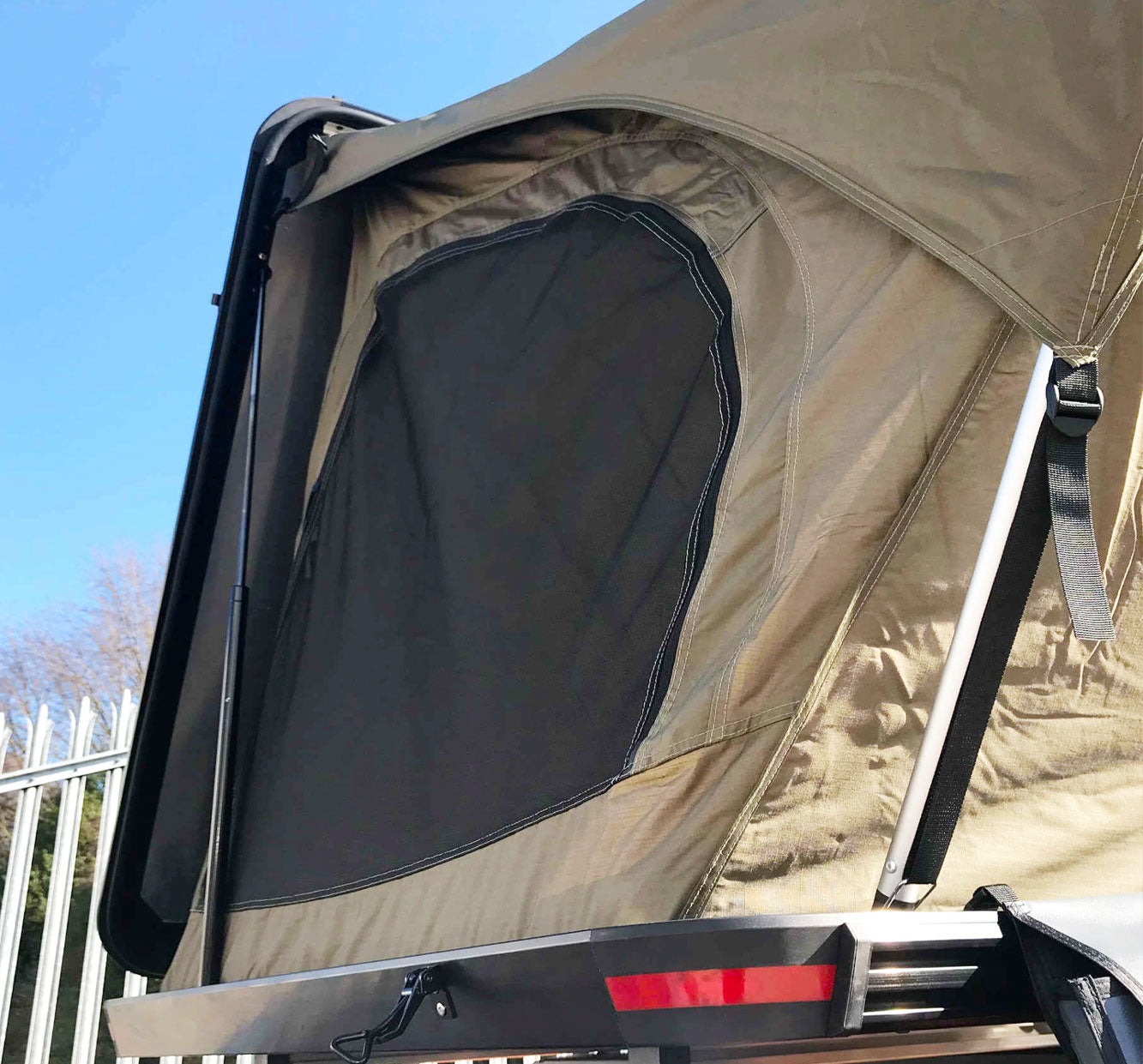 In nur 1 Minuten einsatzbereit, ist unser "Adventure" Dachzelt der ideale Partner für alle Camping und Outdoor Fans die ihren nächsten Camping Ausflug, oder eine Expeditions-Reise bequem und entspannt planen und verbringen möchten. Unser Schalenzelt "Adventure" ist durch seinen großen Eingang und 2 extra große Fenster sowohl für südliche Länder, als auch für Gegenden in denen es öfters regnet geeignet. Der Eingang und die Fenster sind rundum mit Moskitonetzten geschützt.