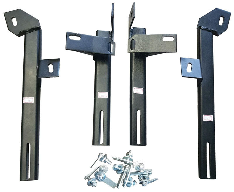 Kein Problem, in dem Fall können Sie diese Toleranzen mit großen Unterlegscheiben zwischen dem Chassis und den Halterungen ausgleichen und so die Trittbretter ganz genau parallel zu den Türschwellern montieren.