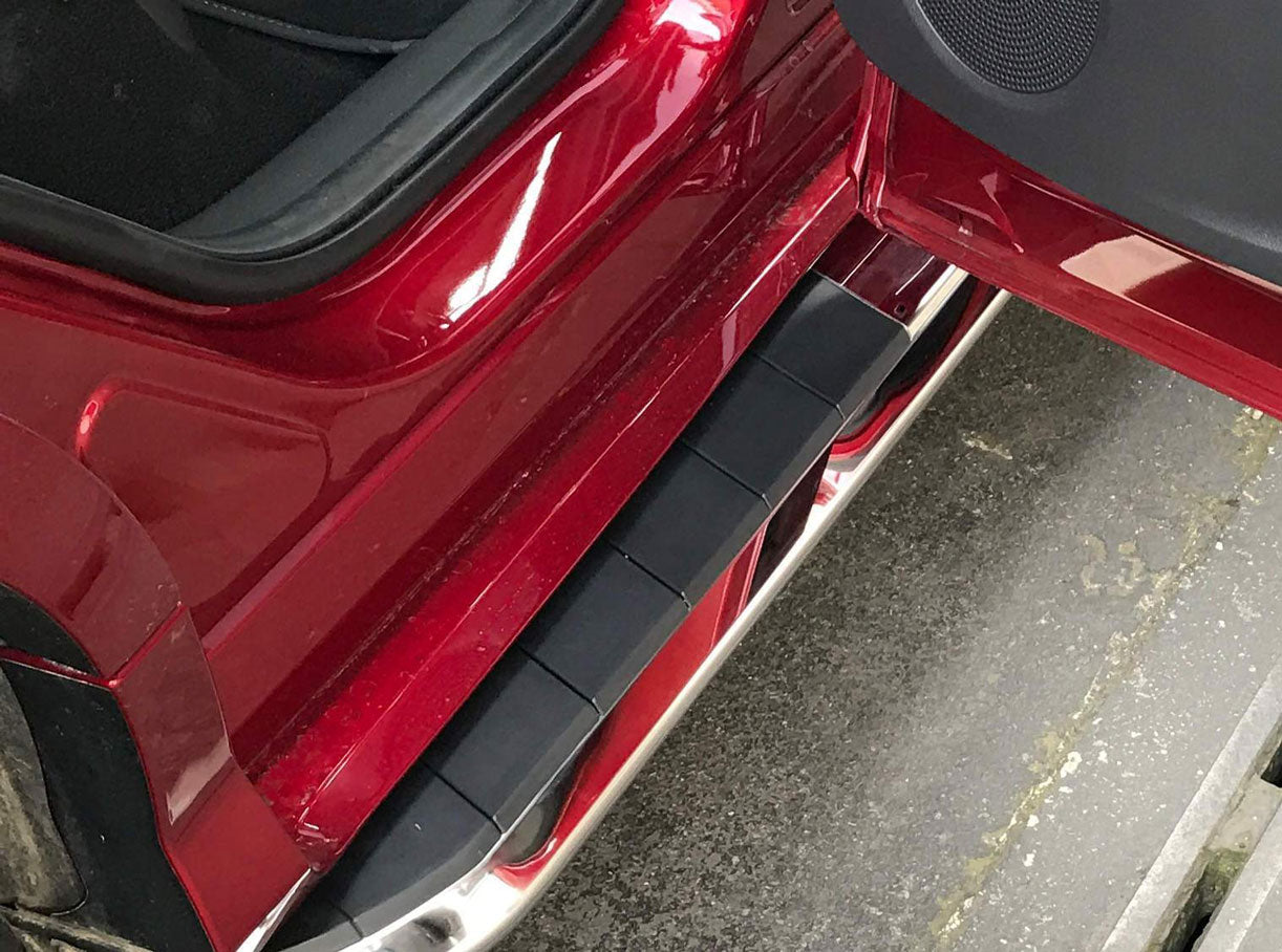 Da nicht jedes Chassis 100% gleich ist und ggf. auch die Halterungen minimale Toleranzen haben können, kann es in seltenen Fällen so aussehen, als ob die Trittbretter nicht genau parallel zu den Türschwellern sitzen.