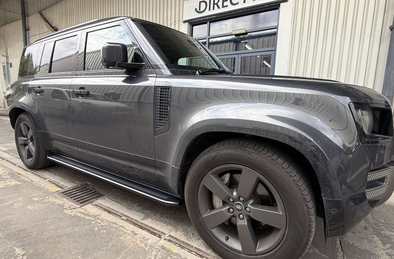 Diese hochwertigen Aluminium Trittbretter werten das Erscheinungsbild Ihres Land Rover Defender 130 (L663) ab Bj. 25 noch einmal ungemein auf und garantieren Ihnen jederzeit einen stylischen und sicheren Auftritt. Unser Angebot beinhaltet ein Paar Trittbretter inkl. Gutachten, allem Montagematerial und ist lieferfrei innerhalb Deutschlands, Österreich und der Schweiz