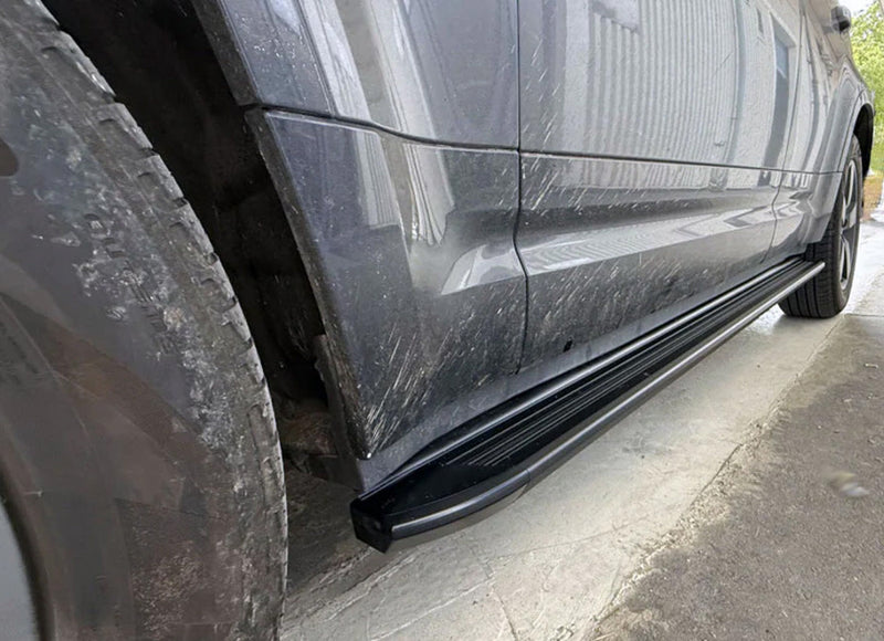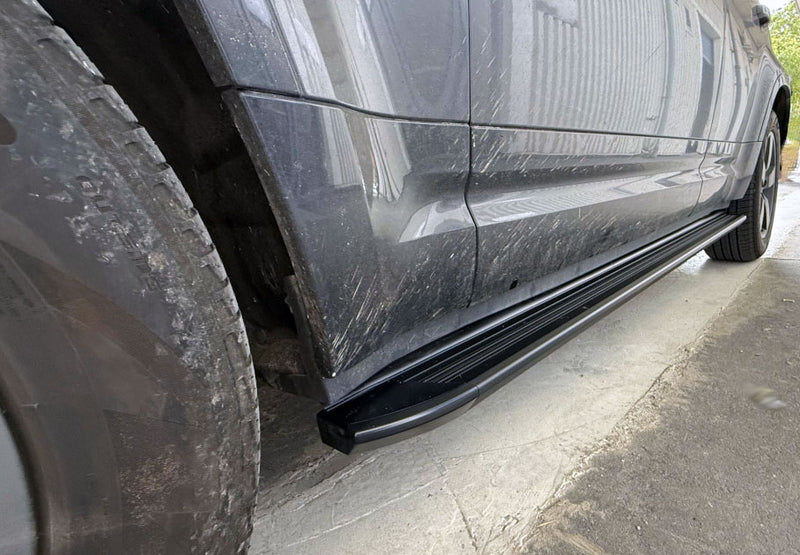 Da nicht jedes Chassis 100% gleich ist und ggf. auch die Halterungen minimale Toleranzen haben können, kann es in seltenen Fällen so aussehen, als ob die Trittbretter nicht genau parallel zu den Türschwellern sitzen.