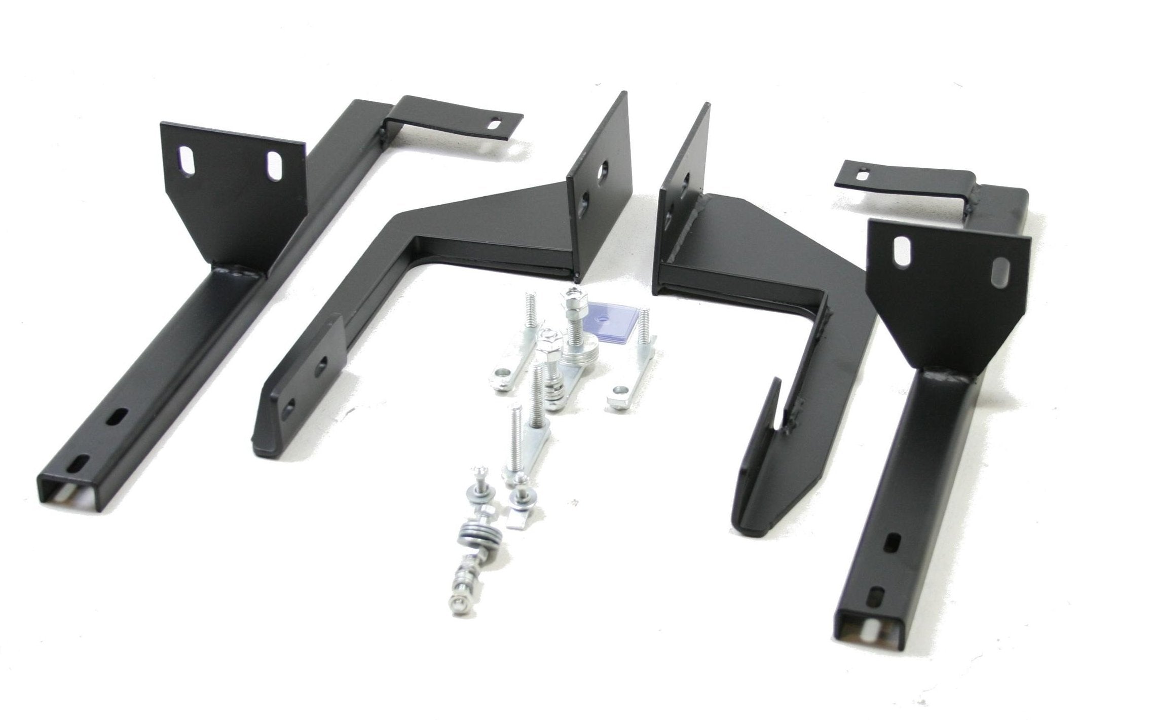 Kein Problem, in dem Fall können Sie diese Toleranzen mit großen Unterlegscheiben zwischen dem Chassis und den Halterungen ausgleichen und so die Trittbretter ganz genau parallel zu den Türschwellern montieren.