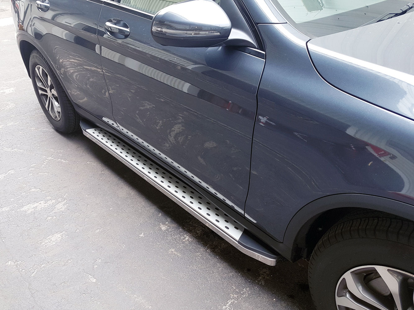 Diese hochwertigen Aluminium Trittbretter werten das Erscheinungsbild Ihres Mercedes GLC Bj. 16-22 noch einmal auf und ermöglichen einen leichteren Zugang zu Ihrem Fahrzeug, sowohl zum Ein- und Aussteigen, als auch um ans Dach zu gelangen. Diese Trittbretter bieten ebenfalls guten Schutz vor Kratzern und Beulen durch andere Autotüren. Hergestellt aus hochwertigen Materialien sind diese Aluminium Trittbretter ein Garant für Haltbarkeit und werden mit einem entsprechendem Gutachten für den Mercedes GLC Bj. 16-22 geliefert.
