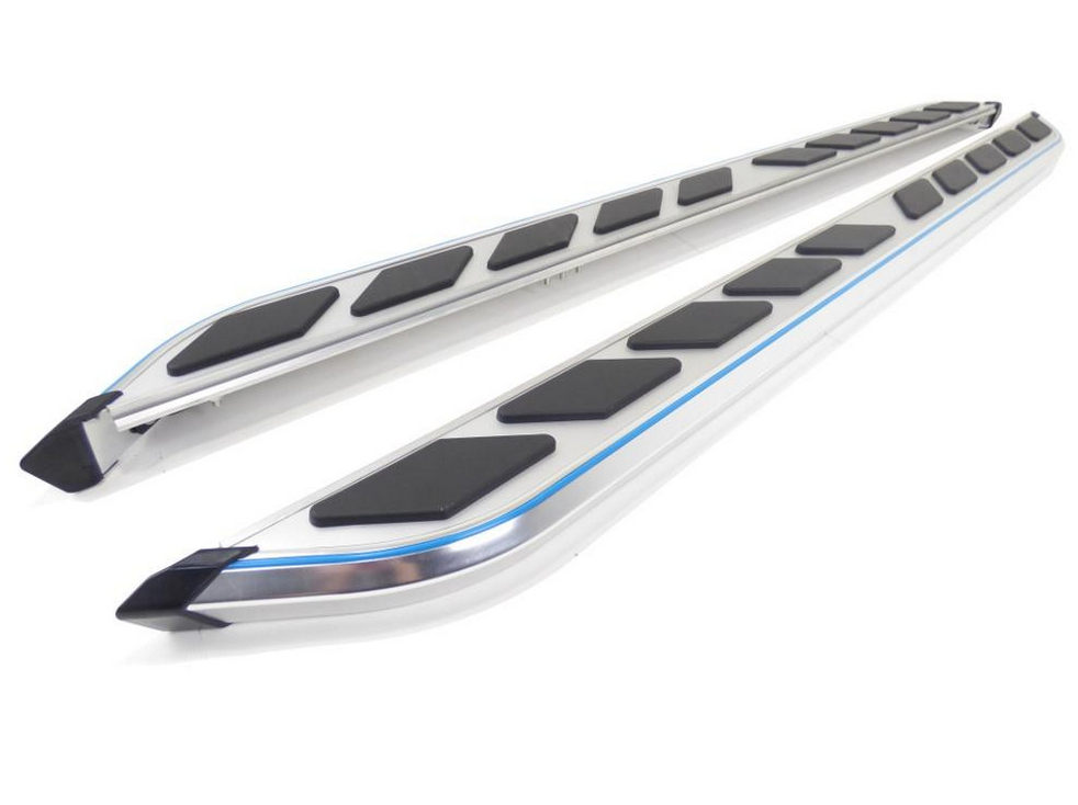 Diese hochwertigen Aluminium Trittbretter werten das Erscheinungsbild Ihres Mercedes Benz ML W166 ab Bj. 12 noch einmal auf und ermöglichen einen leichteren Zugang zu Ihrem Fahrzeug, sowohl zum Ein- und Aussteigen, als auch um ans Dach zu gelangen. Diese Trittbretter bieten ebenfalls guten Schutz vor Kratzern und Beulen durch andere Autotüren. Hergestellt aus hochwertigen Materialien sind diese Aluminium Trittbretter ein Garant für Haltbarkeit und werden mit einem entsprechendem Gutachten für den Mercedes Benz ML W166 ab Bj. 12 geliefert.