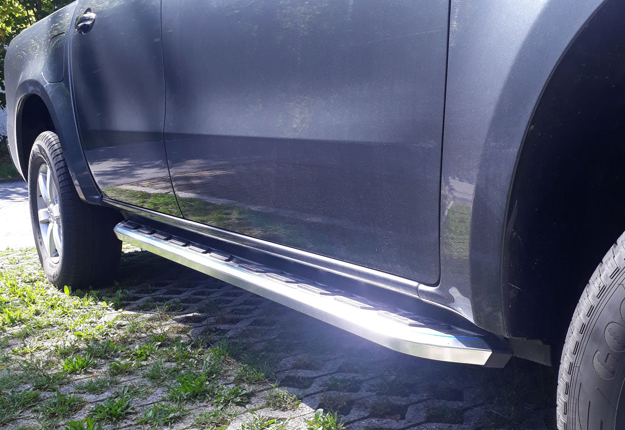 Diese hochwertigen Aluminium Trittbretter werten das Erscheinungsbild Ihres Mercedes X-Klasse ab Bj. 17 noch einmal auf und ermöglichen einen leichteren Zugang zu Ihrem Fahrzeug, sowohl zum Ein- und Aussteigen, als auch um ans Dach zu gelangen. Diese Trittbretter bieten ebenfalls guten Schutz vor Kratzern und Beulen durch andere Autotüren. Hergestellt aus hochwertigen Materialien sind diese Aluminium Trittbretter ein Garant für Haltbarkeit und werden mit einem entsprechendem Gutachten für den Mercedes X-Klasse ab Bj. 17 geliefert.