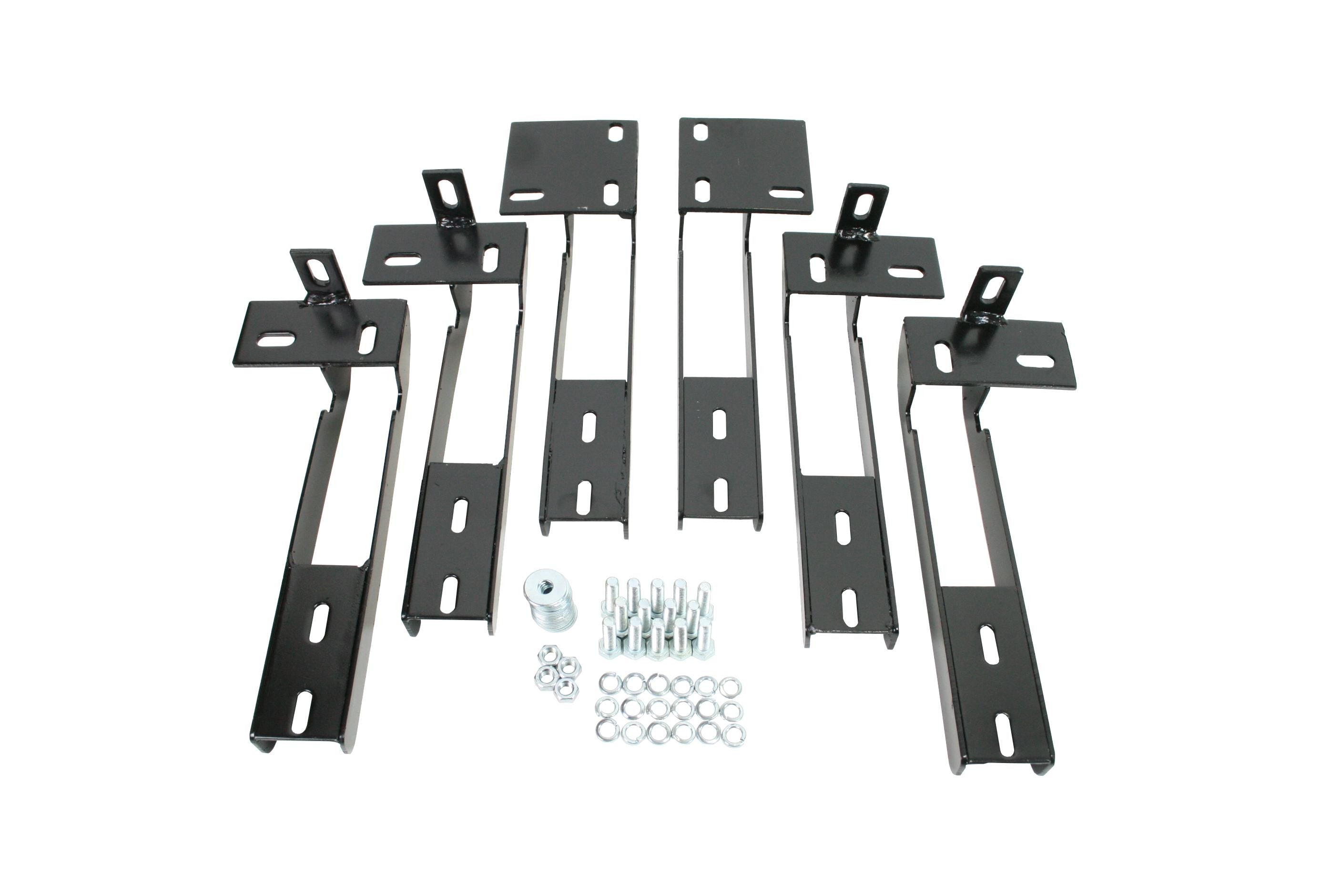 Kein Problem, in dem Fall können Sie diese Toleranzen mit großen Unterlegscheiben zwischen dem Chassis und den Halterungen ausgleichen und so die Trittbretter ganz genau parallel zu den Türschwellern montieren.