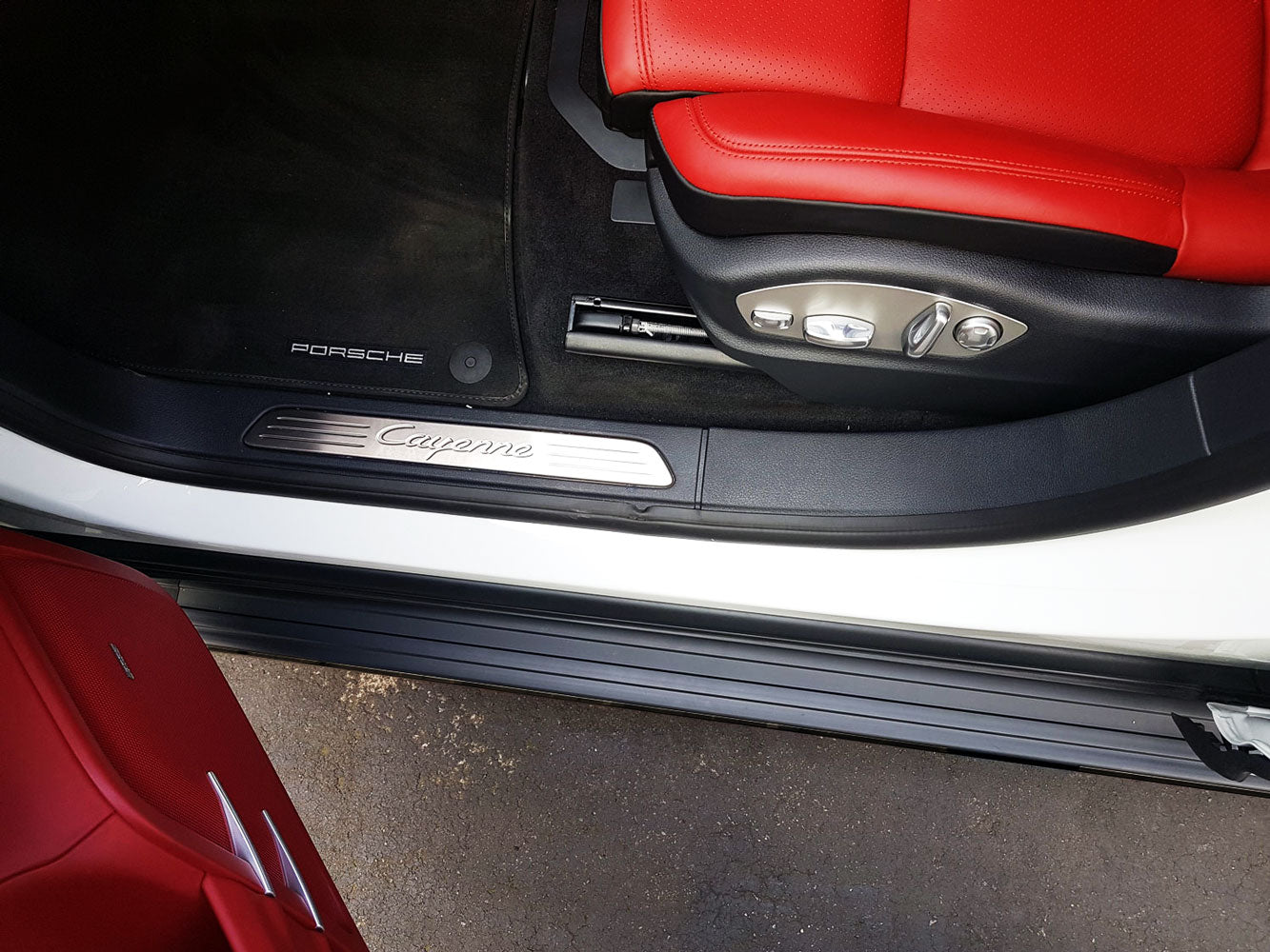 Diese hochwertigen Aluminium Trittbretter werten das Erscheinungsbild Ihres Porsche Cayenne Bj. 10-17 noch einmal auf und ermöglichen einen leichteren Zugang zu Ihrem Fahrzeug, sowohl zum Ein- und Aussteigen, als auch um ans Dach zu gelangen. Diese Trittbretter bieten ebenfalls guten Schutz vor Kratzern und Beulen durch andere Autotüren. Hergestellt aus hochwertigen Materialien sind diese Aluminium Trittbretter ein Garant für Haltbarkeit und werden mit einem entsprechendem Gutachten für den Porsche Cayenne Bj. 10-17 geliefert.