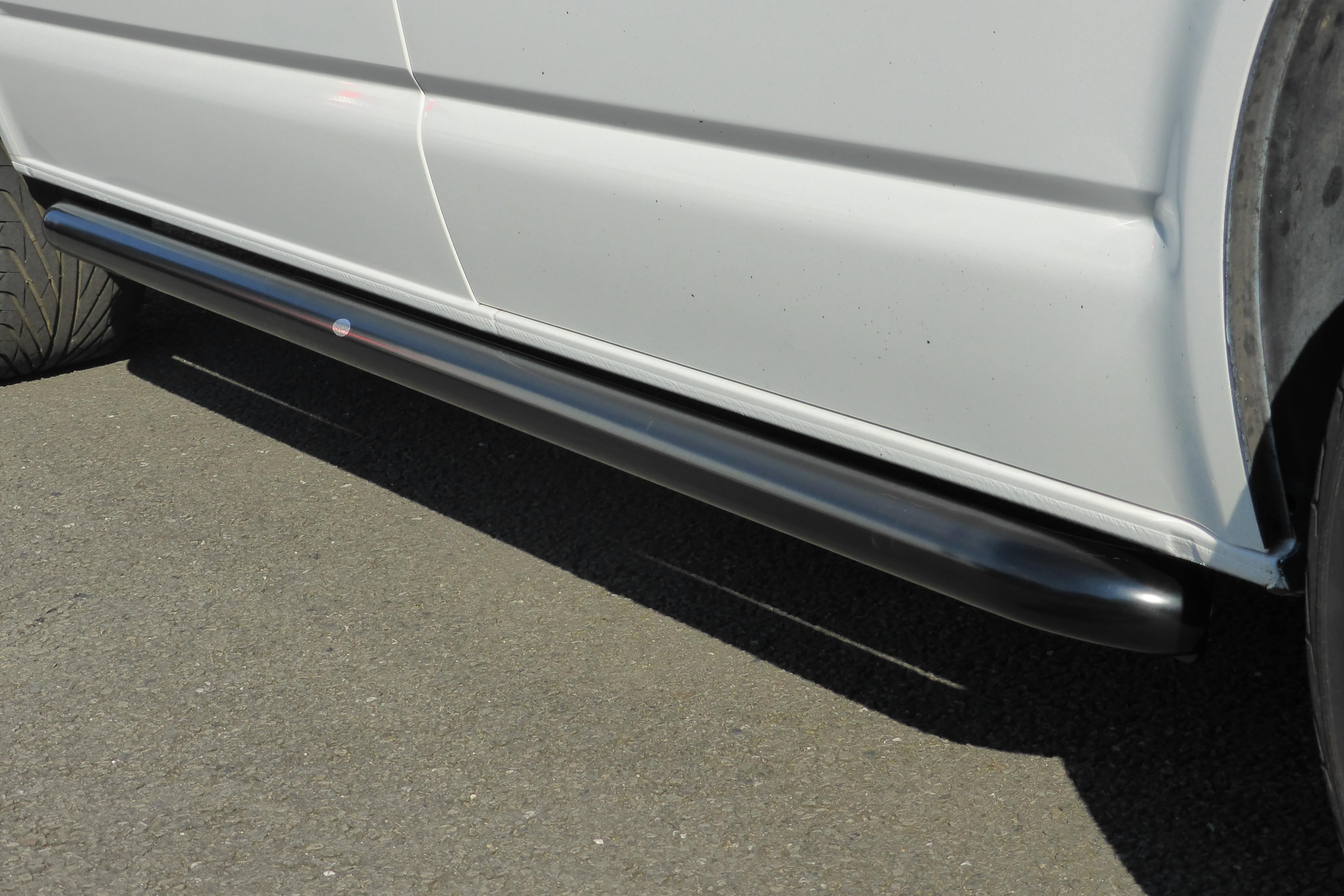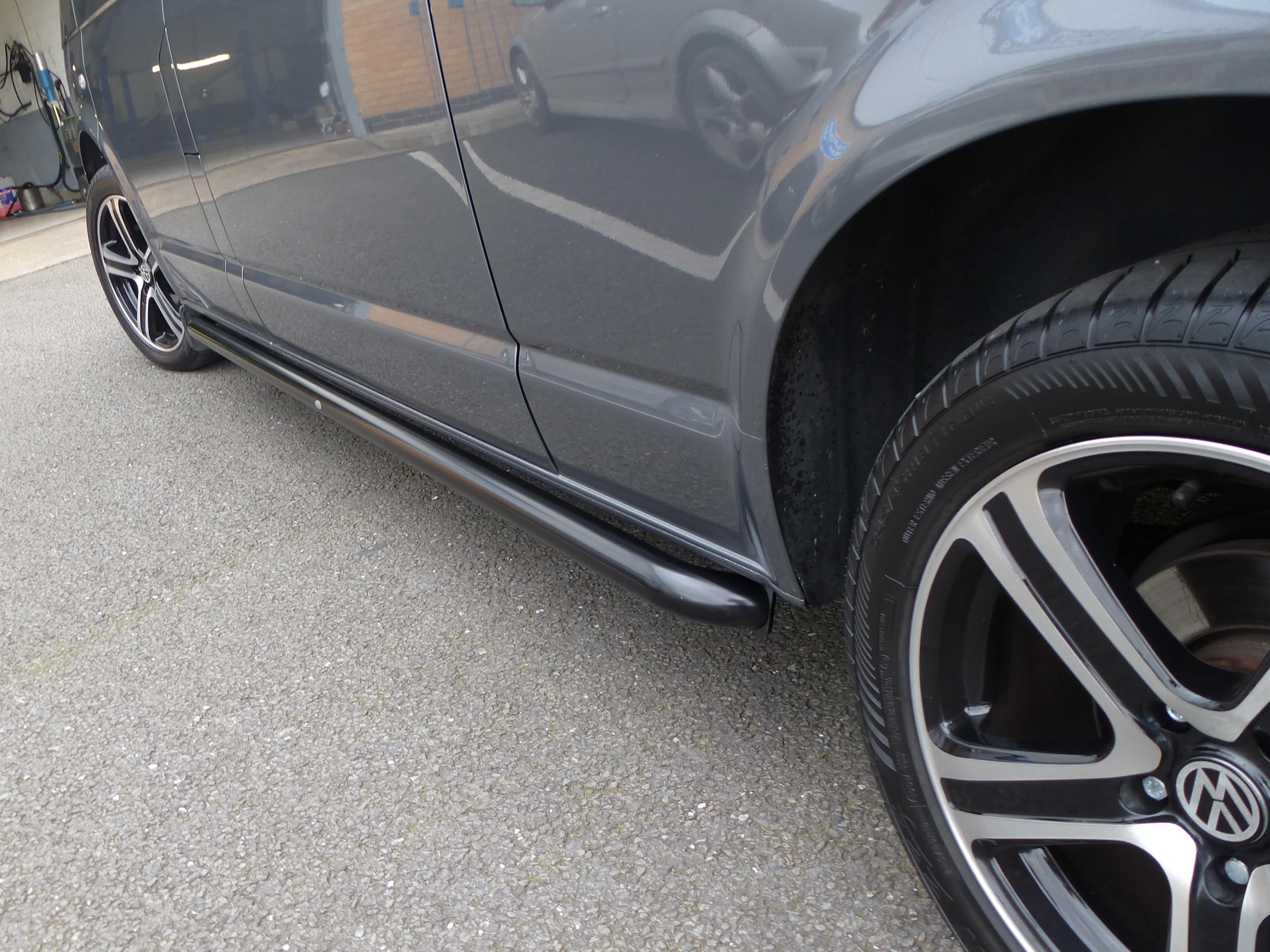 Schwarze Schwellerrohre "Sport" für den VW T5 Bj. 09-15 mit langem Radstand