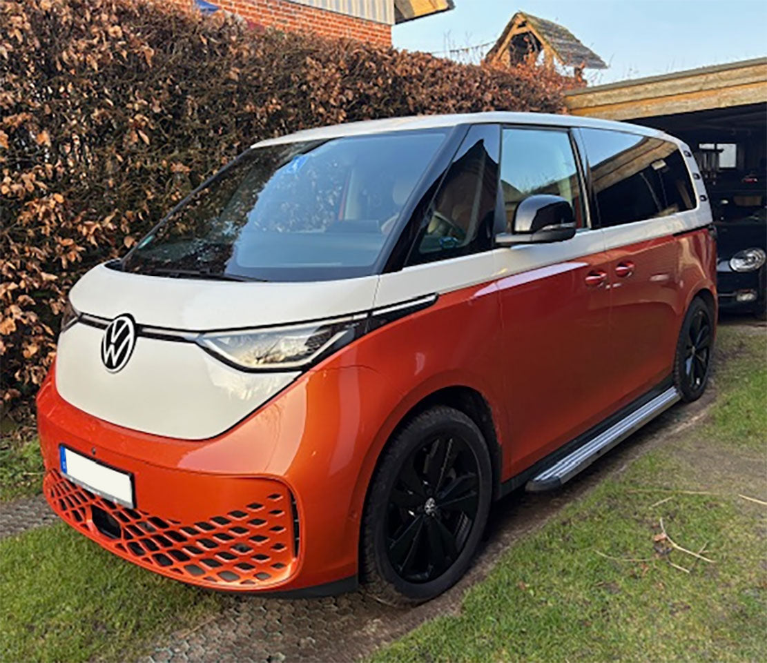 Diese hochwertigen Aluminium Trittbretter werten das Erscheinungsbild Ihres VW ID. Buzz ab Bj. 22 inkl. dem Cargo mit kurzem Radstand noch einmal ungemein auf und garantieren Ihnen jederzeit einen stylischen und sicheren Auftritt. Unser Angebot beinhaltet ein Paar Trittbretter inkl. Gutachten, allem Montagematerial und ist lieferfrei innerhalb Deutschlands, Österreich und der Schweiz.