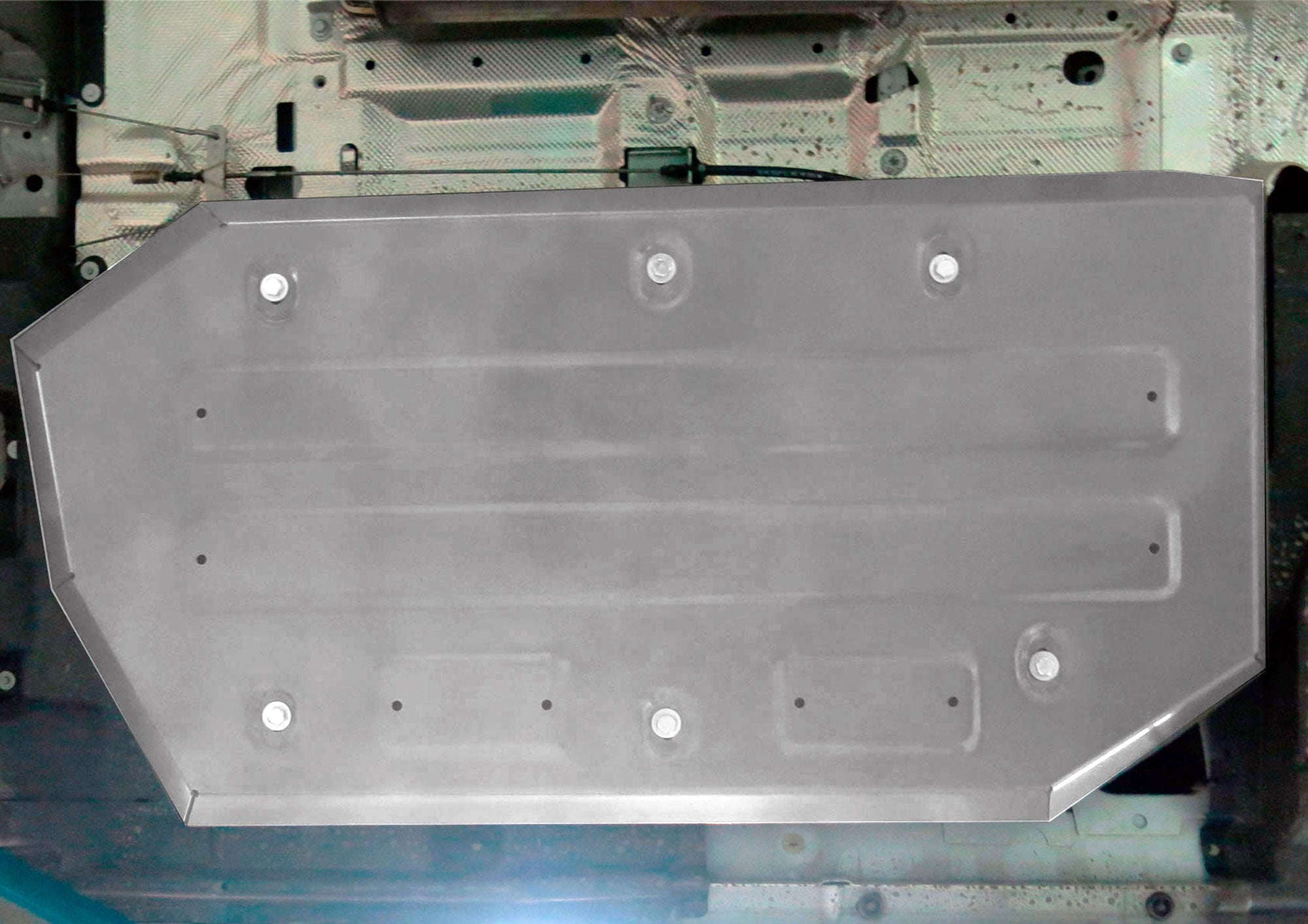 Unser Unterfahrschutz "ProTec" wird zunächst per Laser ausgeschnittenen und anschließend tiefgeprägt. Durch die komplexen Formen mit vielen verschweißten Abkantungen und die geprägten Versteifungsrippen, wird eine wesentlich höhere Stabilität erzielt als bei einfachen, flachen und evtl. ein- oder zweimal gekanteten Platten.