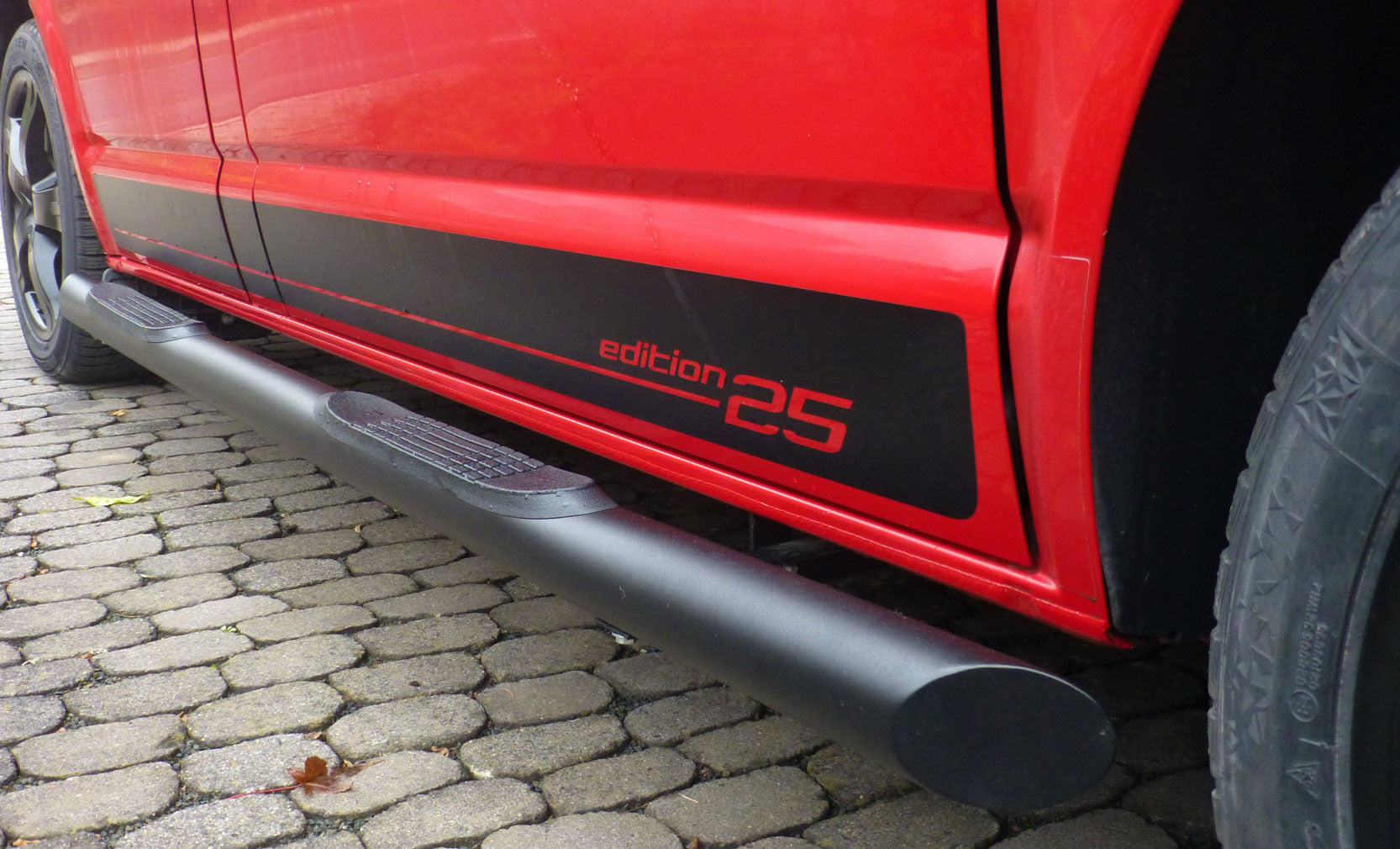 Schwarze Schwellerrohre für den VW T6 Bj. 15-25 mit kurzem Radstand