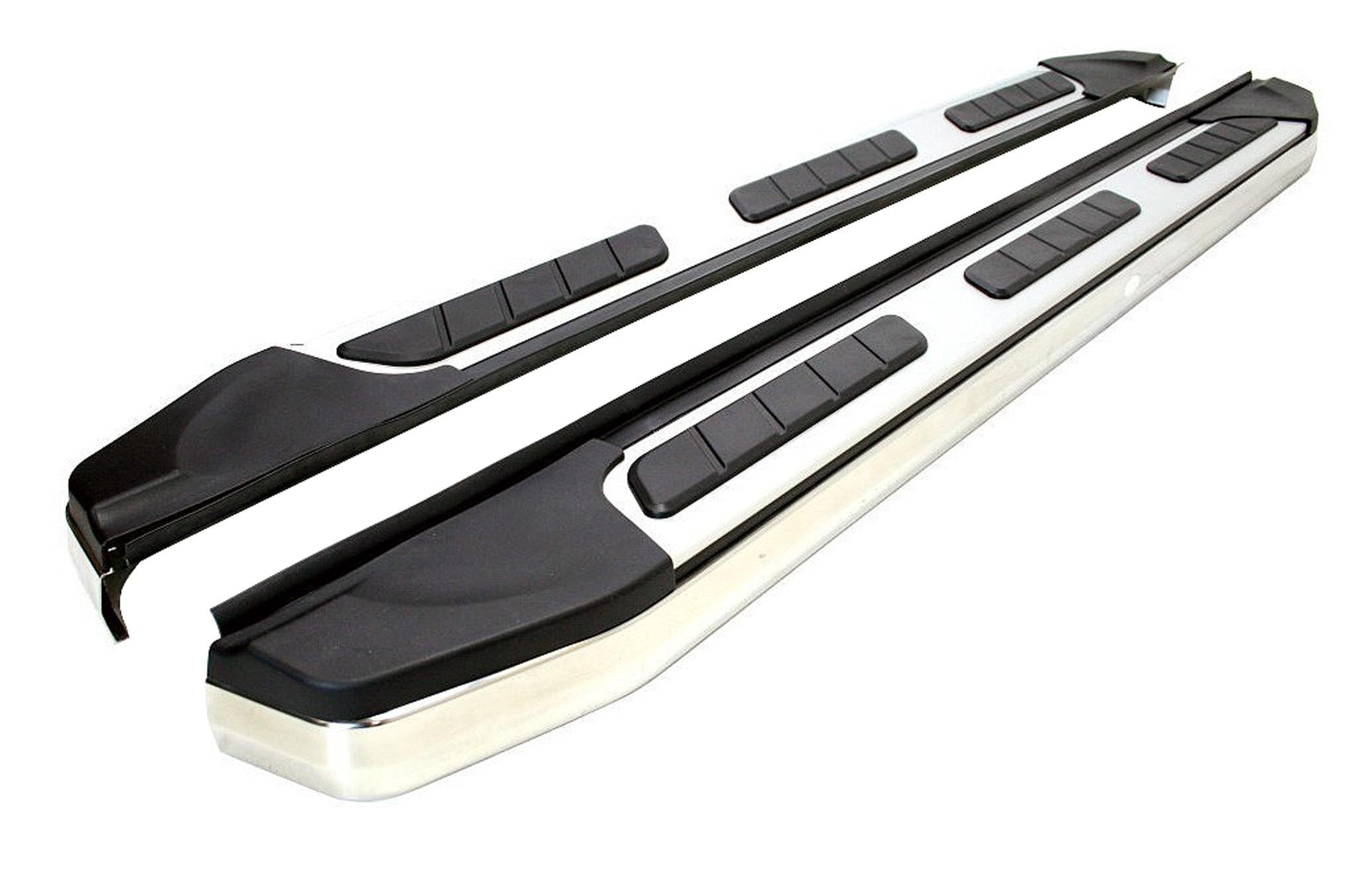 Diese hochwertigen Aluminium Trittbretter werten das Erscheinungsbild Ihres Toyota Hilux ab Bj. 16 Double Cab noch einmal auf und ermöglichen einen leichteren Zugang zu Ihrem Fahrzeug, sowohl zum Ein- und Aussteigen, als auch um ans Dach zu gelangen. Diese Trittbretter bieten ebenfalls guten Schutz vor Kratzern und Beulen durch andere Autotüren. Hergestellt aus hochwertigen Materialien sind diese Aluminium Trittbretter ein Garant für Haltbarkeit und werden mit einem entsprechendem Gutachten für den Toyota Hilux ab Bj. 16 Double Cab geliefert.